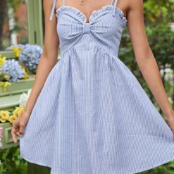 Vestido de tirantes con estampado de rayas ribete fruncido de hombros con cordón – Multicolor