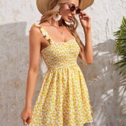 Vestido de tirantes con estampado floral con fruncido – Amarillo