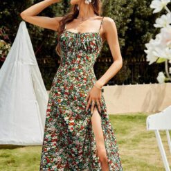 Vestido De Tirantes De Espagueti Sin Mangas Con Estampado Floral – Multicolor