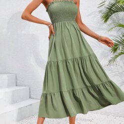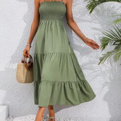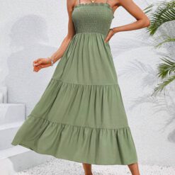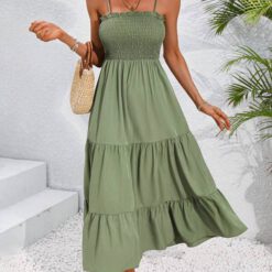 Vestido De Tirantes De Mujer Con Dobladillo Fruncido Y Con Volantes – Verde
