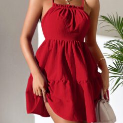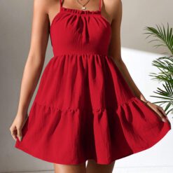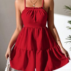 Vestido de tirantes ribete fruncido bajo con fruncido – Rojo