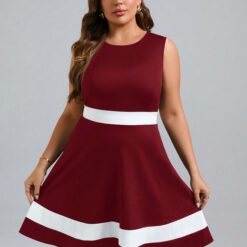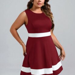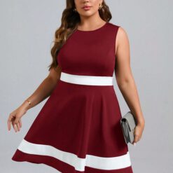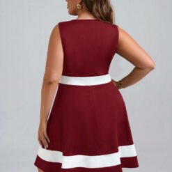 Vestido línea A de color combinado Rojo y blanco