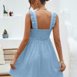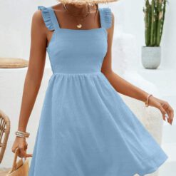 Vestido simple de verano para mujer con capucha y cuello cuadrado – Celeste
