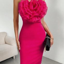 Vestido Sin Tirantes Con Decoración De Flores 3d